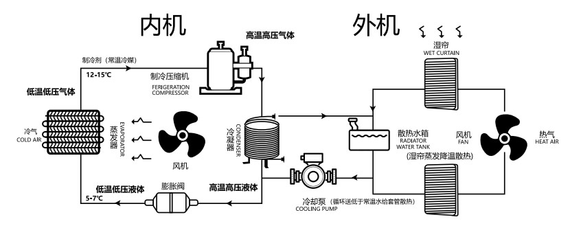 工业降温节能空调利用水蒸发吸热原理制冷。室外空气经湿帘,水分蒸发带走热量,使空气降温,再由风机送入室内。室内热空气排出的同时,水分不断蒸发补充。空气在蒸发器中与水充分接触,水吸收空气中热量汽化,达到降温效果,同时能增加空气湿度。因主要靠水蒸发制冷,相比传统空调更节能,常用于对温湿度要求不特别严格的场所,如工厂车间、仓库等。